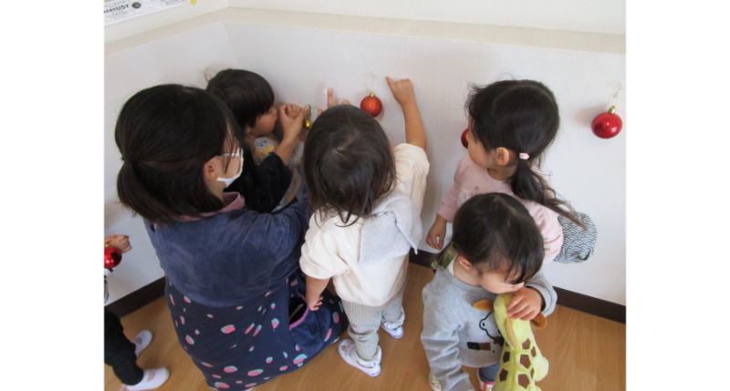 令和7年12月 ~どの行事も楽しいけれど、やっぱり1番はクリスマス会! 保育室を飾って、お花を植えて、サンタさんを迎えたクリスマス会。サンタさんも楽しそうでした~